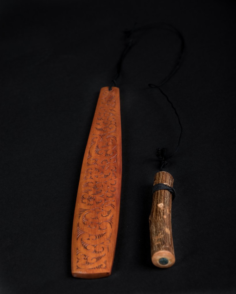 Studio shots taken in 2024 by Tania Warbrick. Taonga Pūoro made by Brian Flintoff.